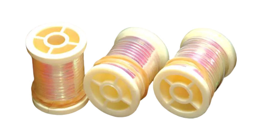 This flat tinsel has a pearl sheen to it, yet it's also nearly translucent, allowing you to wrap it over various colors of thread to achieve an attractive glow in your flies.