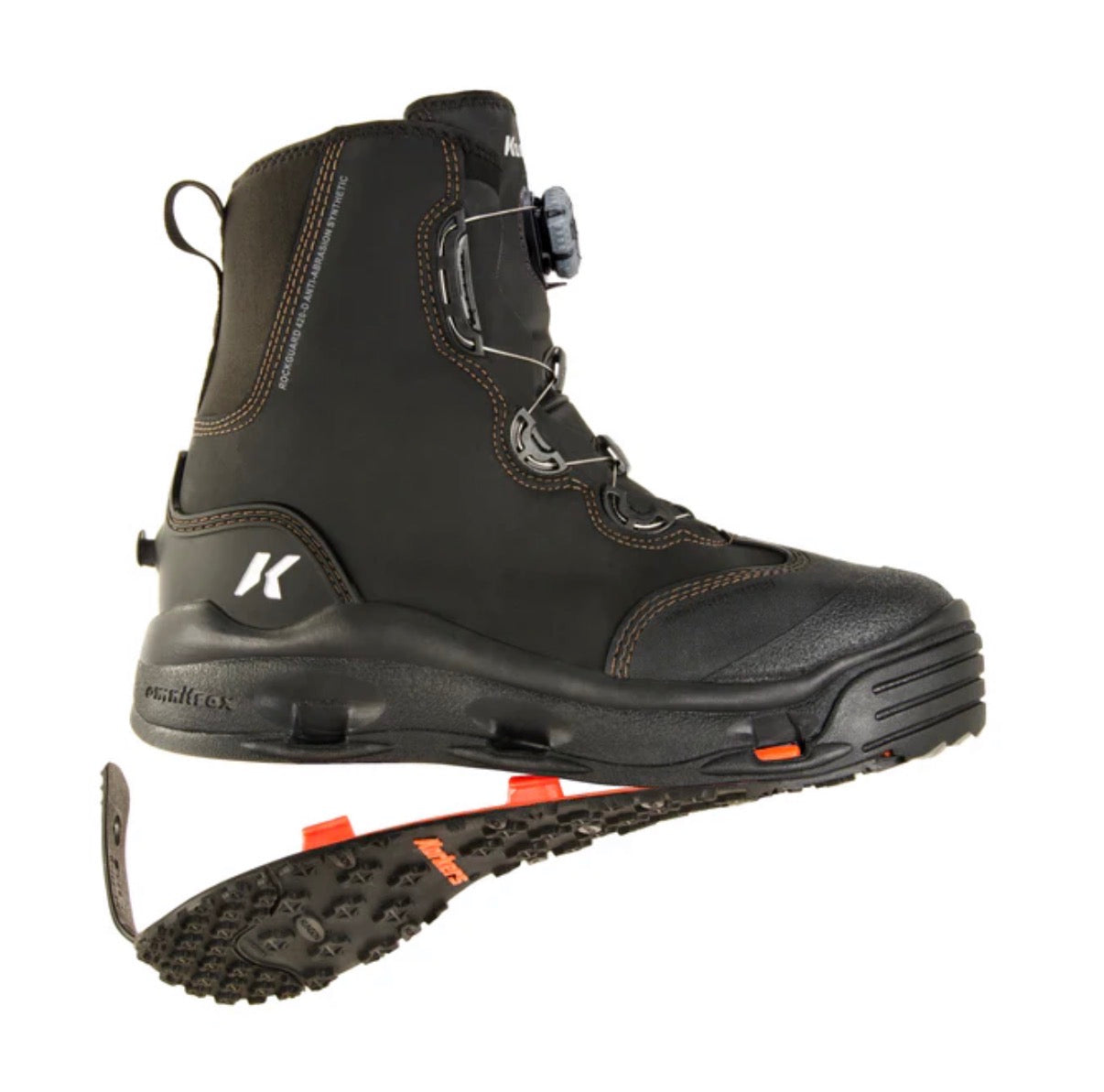 Traction: OmniTrax® Interchangeable Sole System adapts your traction to any fishing condition. Two outsoles included with every purchase.